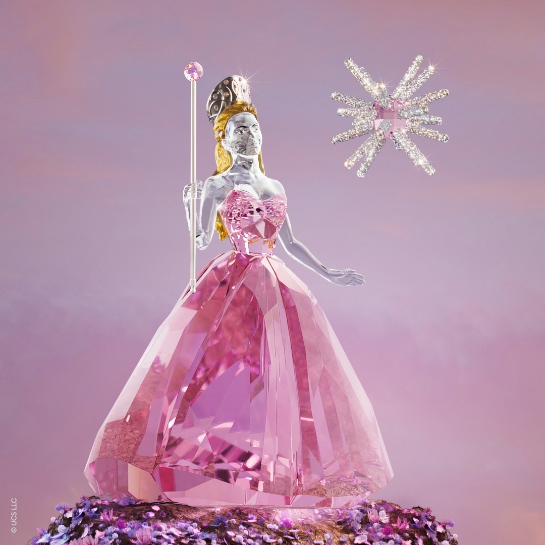 ผลงานชิ้นนี้ได้รับแรงบันดาลใจจากดาวที่ปลายคทาของ Glinda โดยถ่ายทอดความงดงามออกมาผ่านคริสตัลเจียระไนแบบ full-cut และ Crystal Rocks ที่สะท้อนแสงระยิบระยับทุกมุมมองกว่า 443 เหลี่ยมมุม ตรงกลางประดับด้วยคริสตัลสีชมพู ทำให้ออร์นาเมนต์ชิ้นนี้โดดเด่นราวกับมีมนตร์สะกด แขวนด้วยริบบิ้นกรอสเกรนสีขาว เพิ่มสัมผัสความหรูหราเหนือกาลเวลา เหมาะทั้งเป็นของสะสมสุดพิเศษหรือของขวัญที่แฟน Wicked ต้องหลงรัก
