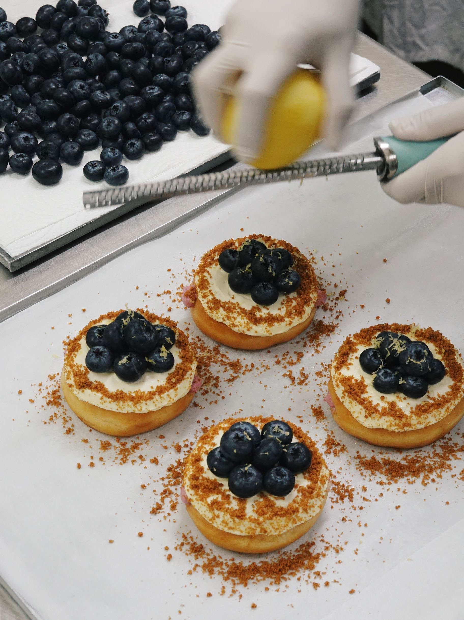เชิญชวนเหล่าคนรักเบอร์รีมาลิ้มลองโดนัทสองรสชาติสุดเอกซ์คลูซีฟที่สร้างสรรค์อย่างพิถีพิถัน ไม่จะว่าเป็นรส Raspberry Pistachio มาพร้อมรสชาติหลากหลายมิติ ท็อปปิ้งด้วยครีมและถั่วพิสตาชิโอหอมมันกรุบกรอบ ผสานกับไส้ราสป์เบอร์รี ชูความหอมหวานอันเป็นเอกลักษณ์ ปิดท้ายความอร่อยด้วยราสป์เบอร์รีลูกโต จาก Driscoll’s ต่อมาคือ รส Blueberry Cream Cheese โดดเด่นด้วยเทกซ์เจอร์ครีมชีสเนียนนุ่ม ครัมเบิ้ลกรุบกรอบหอมเนย บลูเบอร์รีสดจาก Driscoll’s และไส้บลูเบอร์รีสุดเข้มข้น รวมกันเป็นรสชาติเปรี้ยวอมหวานที่ลงตัวในทุกคำ