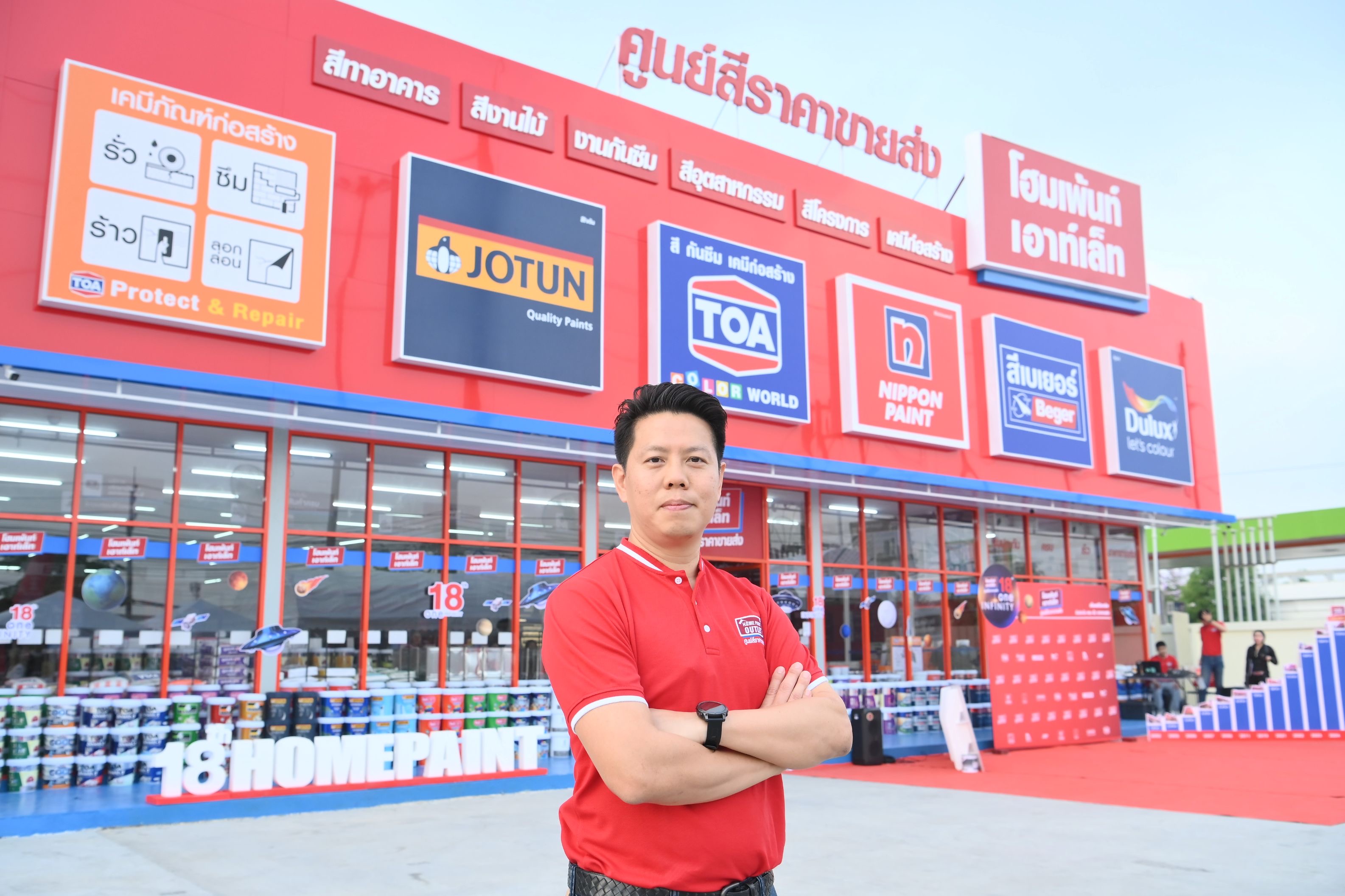 คุณอนุรักษ์ เลิศรัตนชัยกิจ ตำแหน่ง CEO บริษัท โฮมเพ้นท์ จำกัด กล่าวว่า “สาขาที่ 18 นี้คือการก้าวข้ามขีดจำกัดของโฮมเพ้นท์ที่มากกว่าเพียงการเพิ่มจำนวนสาขา แต่คือการขยายโอกาสเพื่อเข้าถึงกลุ่มลูกค้าในย่านอ้อมน้อยและพื้นที่ใกล้เคียง ซึ่งเป็นทำเลศักยภาพที่มีกำลังซื้อสูงและเติบโตอย่างต่อเนื่องทั้งภาคอสังหาริมทรัพย์และอุตสาหกรรม การปักหมุดในจุดยุทธศาสตร์ครั้งนี้ สะท้อนถึงความมั่นใจในความเป็นผู้เชี่ยวชาญเฉพาะทาง ที่พร้อมส่งมอบสินค้าที่ครบครันควบคู่ไปกับบริการระดับมืออาชีพ เพื่อตอกย้ำการเป็นคำตอบอันดับหนึ่งในใจของคนรักสีอย่างแท้จริง”