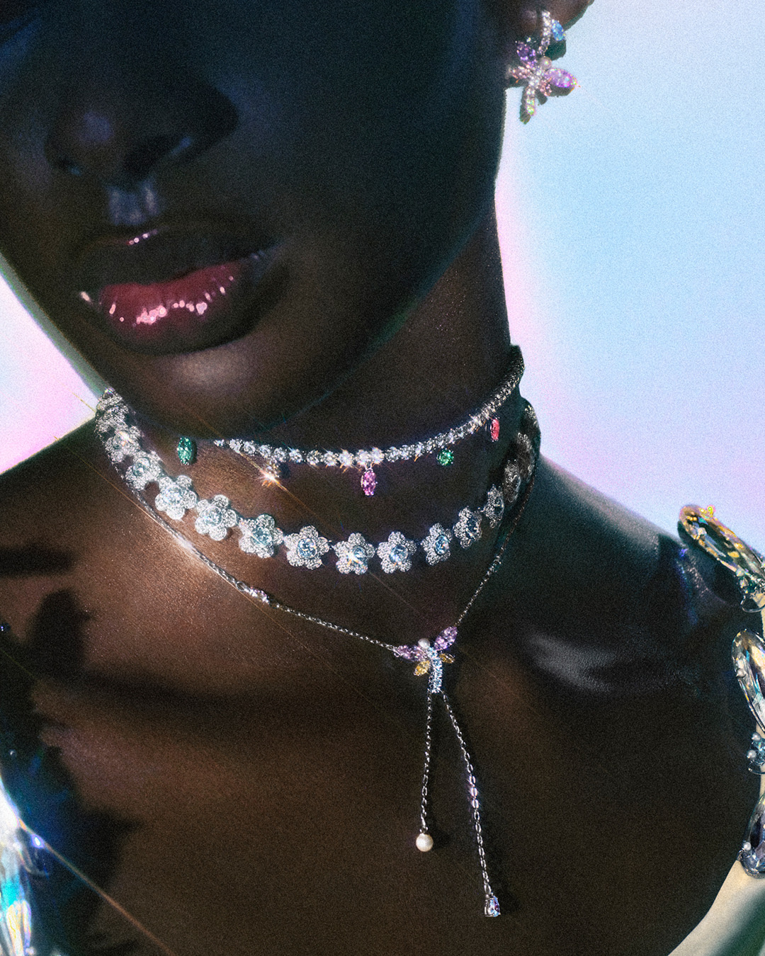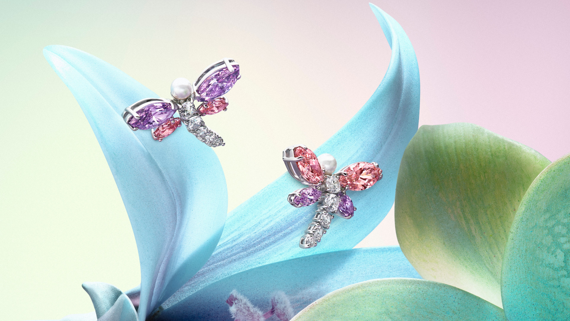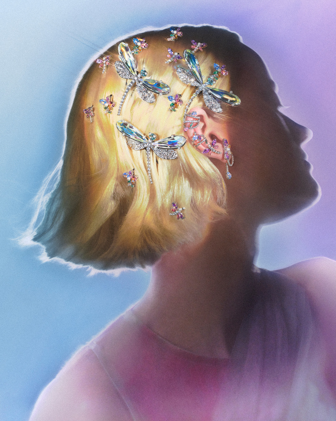 แรงบันดาลใจจากแมลงปอและดอกไม้ ทั้งในมิติที่สมจริงและนามธรรม ถูกร้อยเรียงเข้าด้วยกันเป็นการเฉลิมฉลองความมหัศจรรย์แห่งธรรมชาติผ่านประกายอันเจิดจรัส อัญมณีเฉดสีรุ้งและคริสตัลมุกละเอียดอ่อนช่วยขับเน้นความงดงามของเครื่องประดับที่มีเหลี่ยมเจียระไนหลากหลายรูปแบบและการผสานตัวเรือนต่างชนิดไว้ด้วยกันอย่างประณีต ขณะที่คริสตัลรูปผีเสื้อถูกนำมาตกแต่งบนชิ้นงานอย่างเข็มกลัด เครื่องประดับผม และรูปปั้นขนาดเล็กได้อย่างอ่อนช้อย
