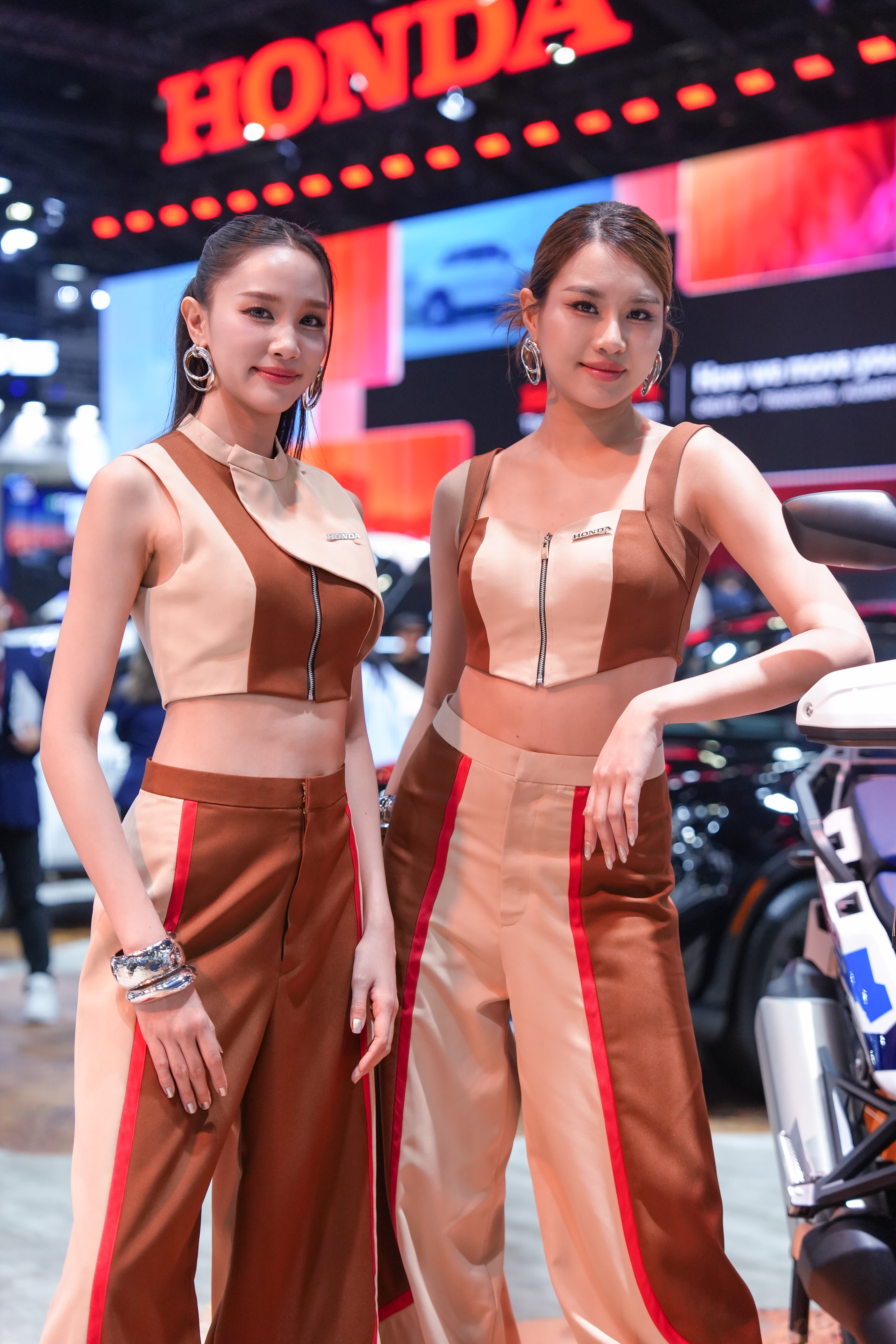 ที่สะท้อนการจัดแสดงไลน์อัปผลิตภัณฑ์ที่ครอบคลุมทั้งรถยนต์ รถจักรยานยนต์ และเครื่องยนต์อเนกประสงค์ (Power Products) และสะท้อนผ่านเครื่องแต่งกายของ Honda Lady ซึ่งได้รับการสร้างสรรค์ให้สอดคล้องกับแต่ละโซน